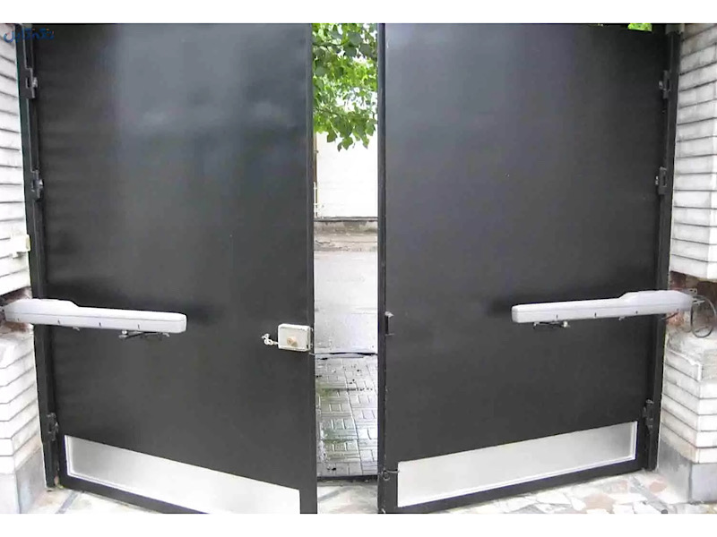 اتصال بازوها به درب: در این مرحله، بازوها به درب اصلی متصل میشوند. برای این کار باید از پیچها و اتصالات مقاوم استفاده شده و دقت لازم در راستای قرار گرفتن درب رعایت گردد.