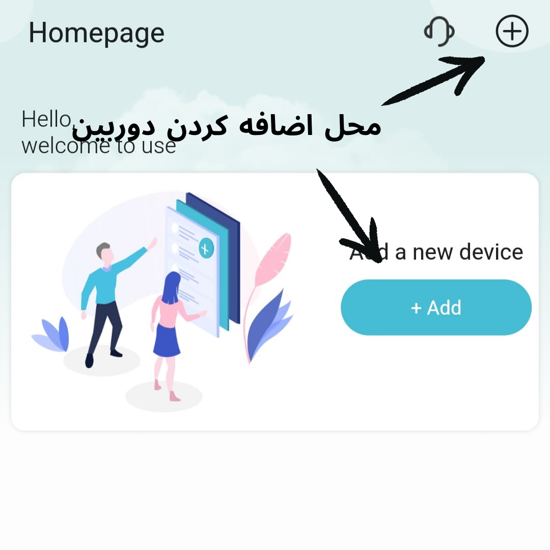 🔹 برنامه O-KAM PRO را باز کنید و روی علامت “+” بزنید.