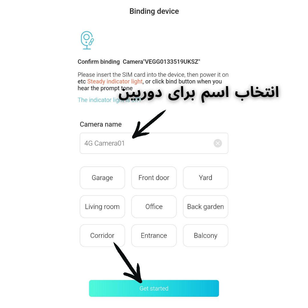 🔹 پس از اتصال موفق، برای دوربین خود یک نام انتخاب کنید.